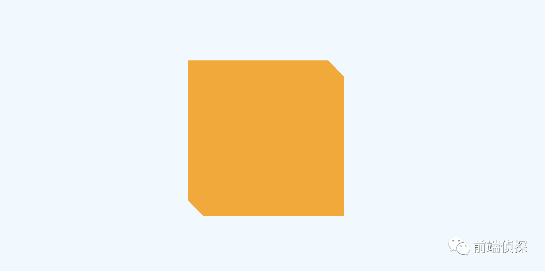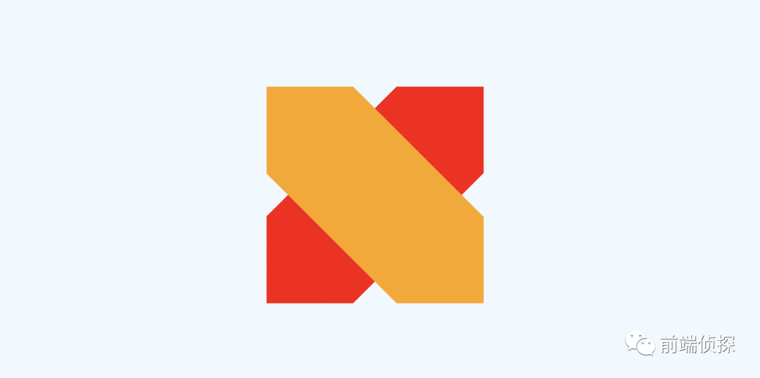 div{ --r: 45deg; --d: 30%; background: linear-gradient(var(--r), transparent var(--d), orange 0 calc(100% - var(--d)), transparent 0), linear-gradient(calc(var(--r) + 90deg), transparent var(--d), red 0 calc(100% - var(--d)), transparent 0),}效果如下