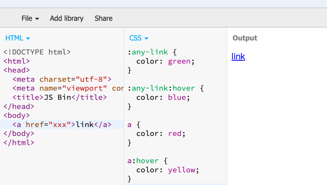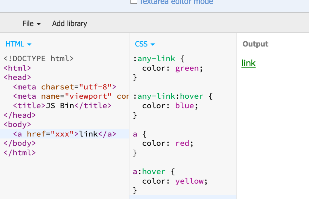 例如 any-link 语义好,匹配最精准,且无需担心 :visited 伪类的干扰,但优先级较高