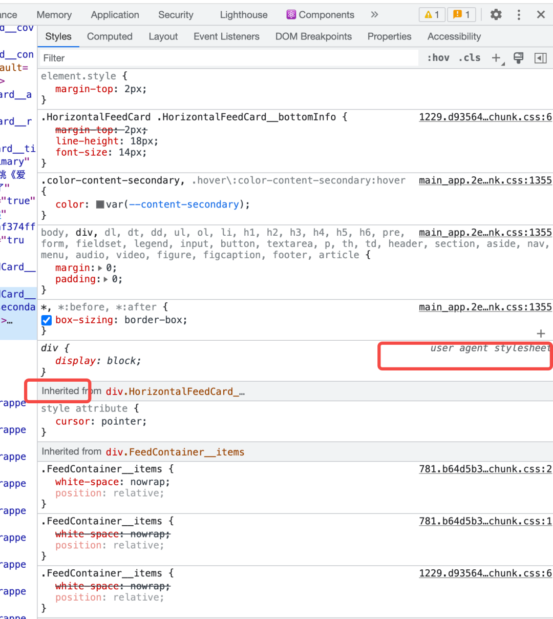 Injected stylesheet:用户设置的 CSS 多指用户安装插件等工具所设置的 CSS(称为 “注入的样式表”) 常见现象:在开发过程中遇到页面中某个控件样式异常了(无法正常显示),然后打开浏览器控制面板,发现一大片灰色字体的,并且右上方还写着 injected stylesheet