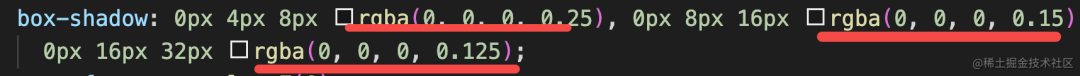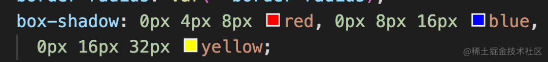 阴影的 4 个值是 x、y、扩散半径、颜色。