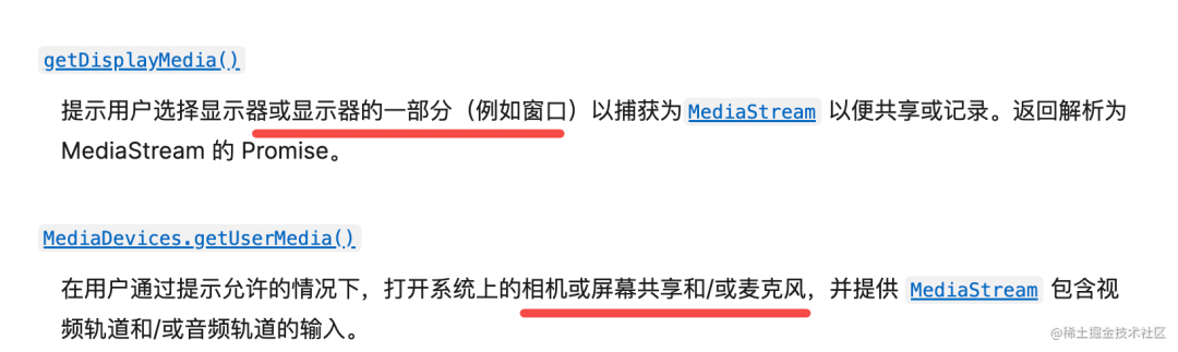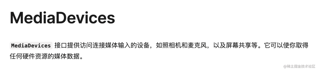 在 MDN 中可以看到 mediaDevices 的介绍: