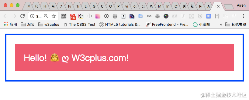 从文字上理解可能有点困惑,我们通过一个小例来帮助大家理解。假设我们有一个 <p> 元素,接触过 CSS 的同学都知道,它是一个块元素,为了好看,咱们添加一点修饰的样式代码: