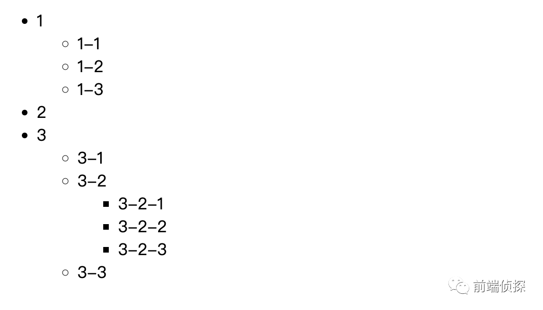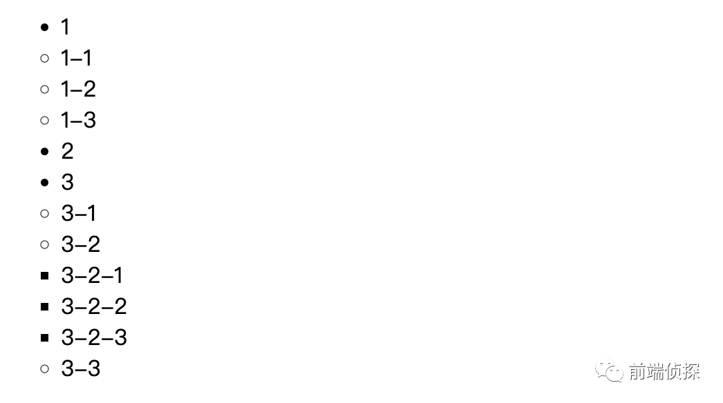 是不是可以非常清楚地看出每个列表的层级?下次碰到类似的需求就不需要用 JS 去递归生成了,直接用 CSS 渲染,简单高效,也不会出错。