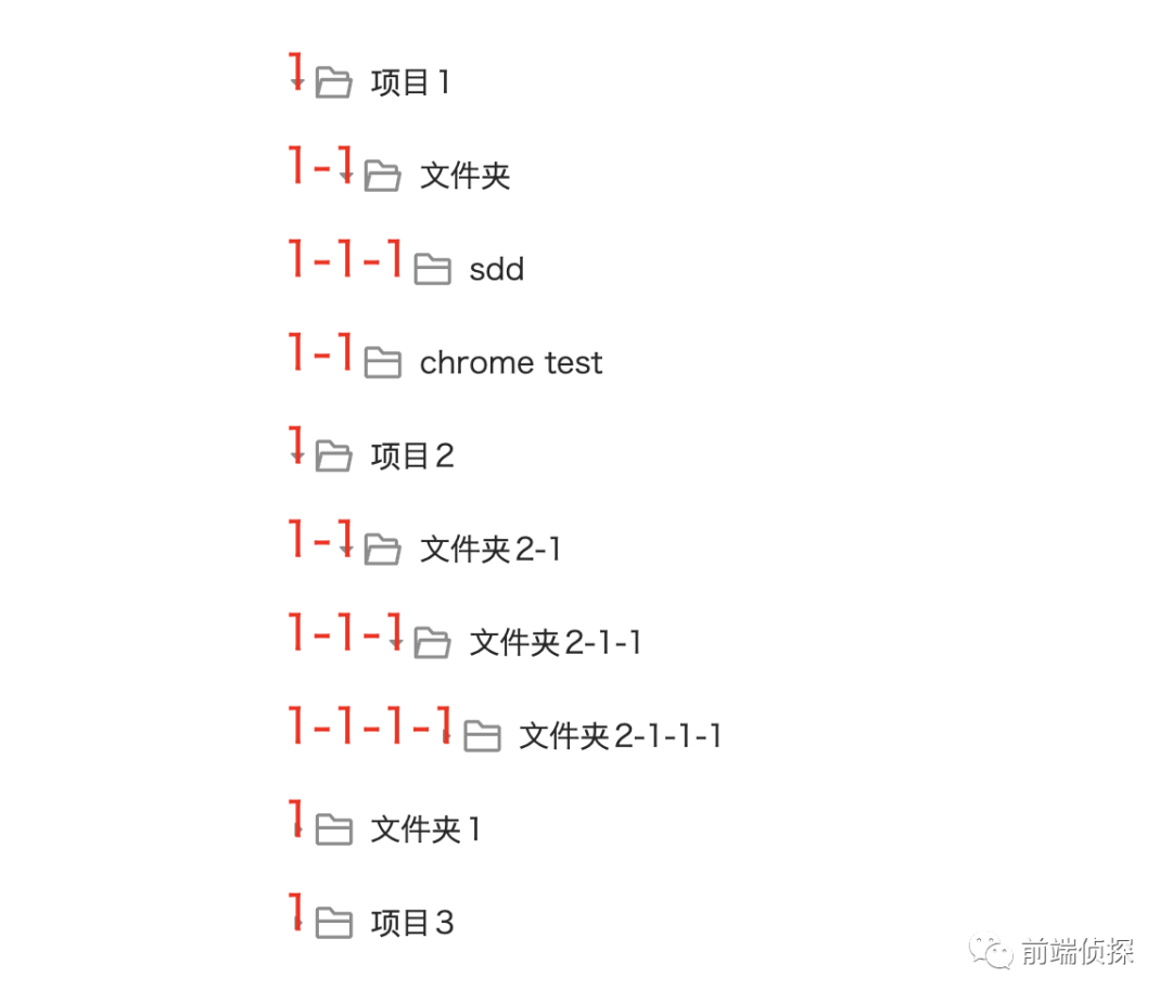 .tree details{ counter-reset: count;}.tree summary{ counter-increment: count;}.tree summary::before{ content: counters(count,"-"); color: red;}由于结构关系,目前序号都是1,没关系,只需要有嵌套关系就行,效果如下