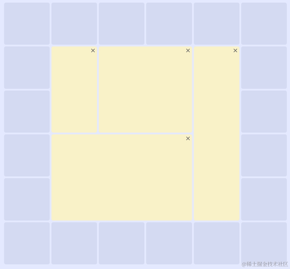 grid-area: `${y + 1} / ${x + 1} / ${y + row + 1}/ ${ x + column + 1 }`预览容器
