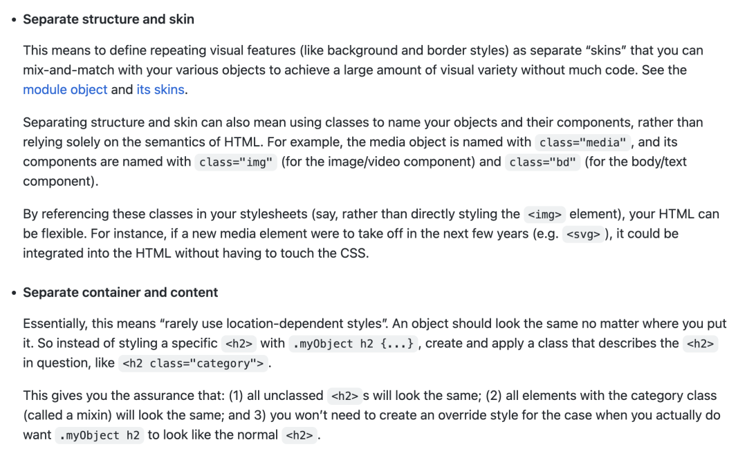 OOCSS 有两个主要原则:结构与样式分离和容器与内容分离。