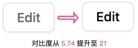 最权威的互联网无障碍规范 —— WCAG AA[21] 规范规定,所有重要内容的色彩对比度需要达到 4.5:1 或以上(字号大于 18 号时达到 3:1 或以上),才算拥有较好的可读性。
