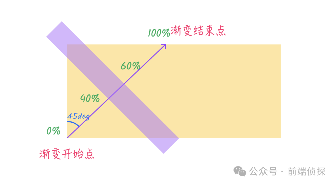 至于扫光,我们只需要绘制一条斜向上45deg的线性渐变就可以了,示意如下