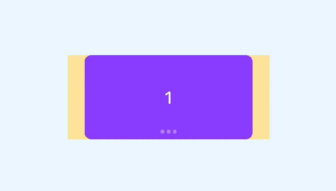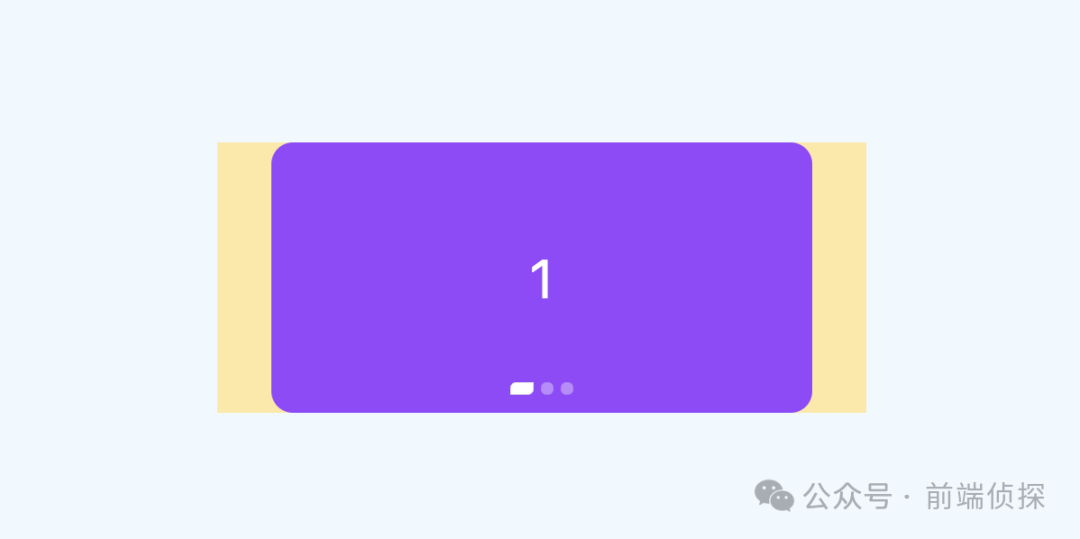 .swiper { display: flex; overflow: auto;}.swiper-item { width: 100%; display: flex; justify-content: center; flex-shrink: 0;}.card { width: 300px; height: 150px; border-radius: 12px; background-color: #9747FF;}效果如下