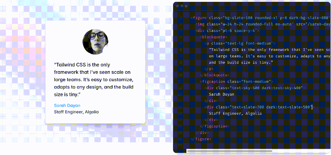 A utility-first CSS framework packed with classes like flex, pt-4, text-center and rotate-90 that can be composed to build any design, directly in your markup.