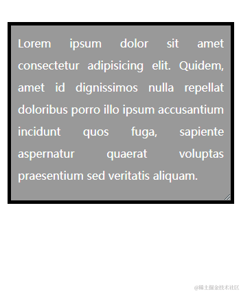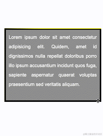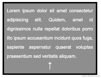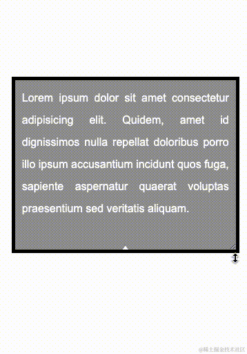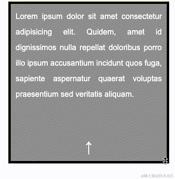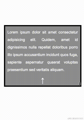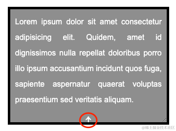 <div class="g-container"> <div class="g-content"> Lorem ipsum dolor s... </div></div>.g-container { position: relative; width: 300px; height: 300px; resize: vertical; overflow: hidden; .g-content { height: 100%; } .g-content::before { content: "↑"; position: absolute; bottom: 0px; left: 50%; transform: translate(-50%, 0); }}它是这么一个样式效果:
