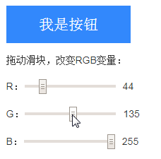 :root { /* 定义RGB变量 */ --red: 44; --green: 135; --blue: 255; /* 文字颜色变色的临界值,建议0.5~0.6 */ --threshold: 0.5;}.btn { /* 按钮背景色就是基本背景色 */ background: rgb(var(--red), var(--green), var(--blue)); /** * 使用sRGB Luma方法计算灰度(可以看成亮度) * 算法为: * lightness = (red * 0.2126 + green * 0.7152 + blue * 0.0722) / 255 */ --r: calc(var(--red) * 0.2126); --g: calc(var(--green) * 0.7152); --b: calc(var(--blue) * 0.0722); --sum: calc(var(--r) + var(--g) + var(--b)); --lightness: calc(var(--sum) / 255); /* 设置颜色 */ color: hsl(0, 0%, calc((var(--lightness) - var(--threshold)) * -999999%));}效果如下