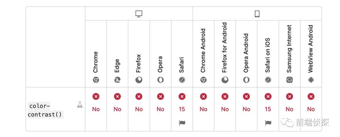 .text-contrast-primary { color: color-contrast(var(--theme-primary) vs white, black);}不过,现在还没有任何浏览器支持。