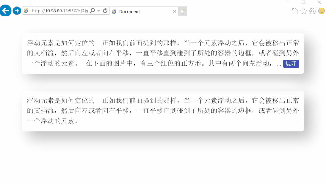 </div>可以看到基本上正常了,除了没有省略号,现在加上省略号吧,跟在展开按钮之前就可以了,可以用伪元素实现