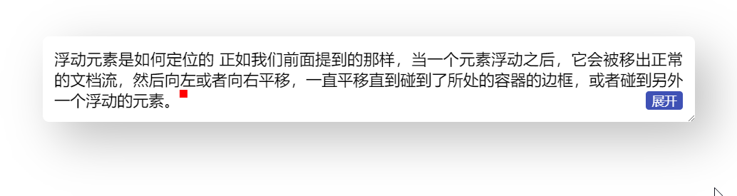 可以肯定的是,CSS 是没有这类逻辑判断,大多数我们都需要从别的角度,采用 “障眼法” 来实现。比如在这个场景,当没有发生截断的时候,表示文本完全可见了,这时,如果在文本末尾添加一个元素(红色小方块),为了不影响原有布局,这里设置了绝对定位