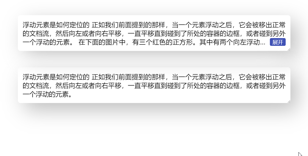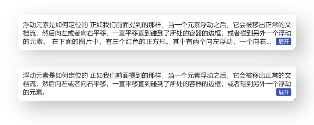 上面的交互已经基本满足要求了,但是还是会有问题。比如当文本较少时,此时是没有发生截断,也就是没有省略号的,但是 “展开” 按钮却仍然位于右下角,如何隐藏呢?