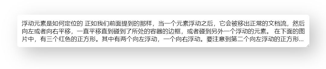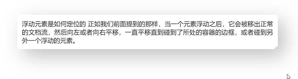 正如我们前面提到的那样,当一个元素浮动之后,它会被移出正常的文档流,然后向左或者向右平移,一直平移直到碰到了所处的容器的边框,或者碰到另外一个浮动的元素。
