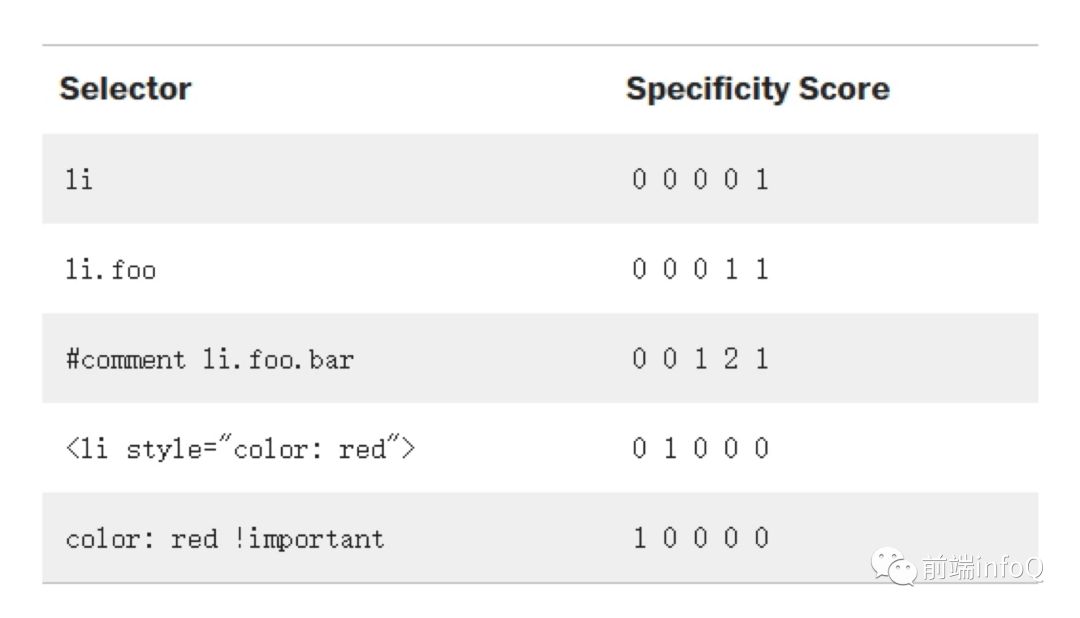 | 选择器 | 权重 |