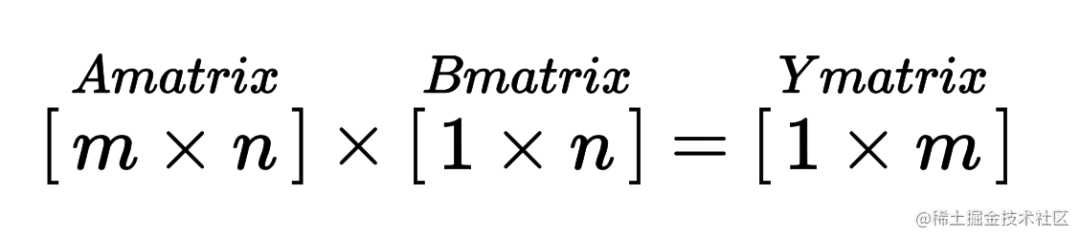 假设 A * B = Y。其中,A 为 m * n 的 m 行 n 列矩阵,B 为 1 * n 列的矩阵。B 拆分为列向量,并且列向量的维数就是矩阵的行数。