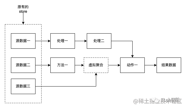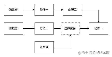 为了方便理解,可以和之前一样将数据处理理解为 computed,每一个节点都可以随意衍生出一个新的节点,但是触发整条流的变化又只会在初始节点(源数据)节点,使用整条流的结果。