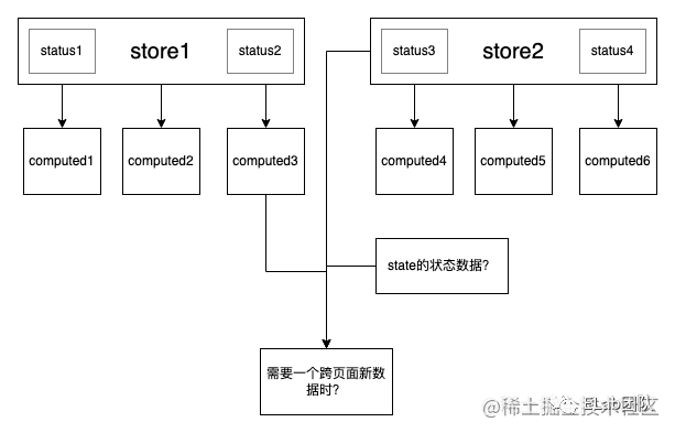 其次 redux 没法很好的描述数据与数据之间的关系,有人说 computed 可以描述数据与数据之间的关联,简单意义上是没问题的,但是 computed 的局限性,跨 redux 无法支撑,如果要使用,必须将所有源数据汇集到同一个 redux 之间,这与最小可用原则是相违背的。