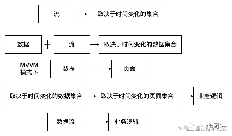 前端针对于现状 mvvm 模式下,数据即页面,在多数情况下,数据不变页面不变。那么我们转换一下,数据 ==> 页面,数据流是否可以等价为一个页面的变化集合。这个是什么,就是我们的业务逻辑。