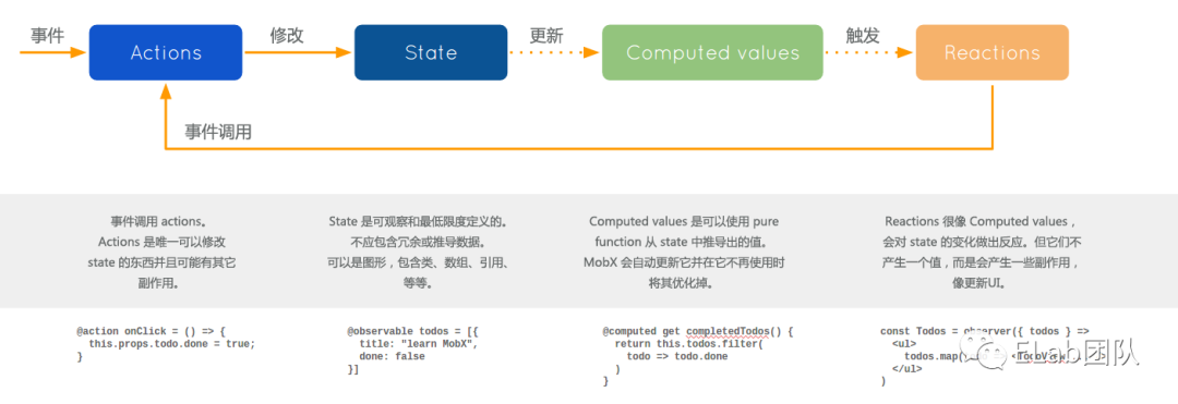 mobx 引入了全新的思想,将数据作为一个源头,拥有当数据变化时,通过计算状态,页面进行变化,并且根据 observable,自动根据依赖执行更新。虽然有了 action,但还是没有强制分离副作用。