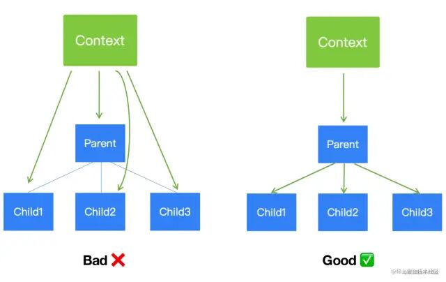 综上,在系统中跟业务相关、会频繁变动的数据在共享时,应谨慎使用 context。