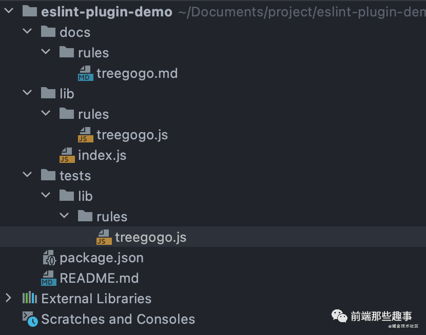 当完成上面一系列操作之后,eslint 插件模版初步完成,接下来我们找到目录中