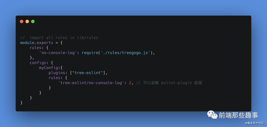 rules 就是 eslint 的规则,你可以在 rules 配置中根据在不同场景、不同规范下添加自定义规则详情可参考之前 🌲 树酱的 前端规范那些事