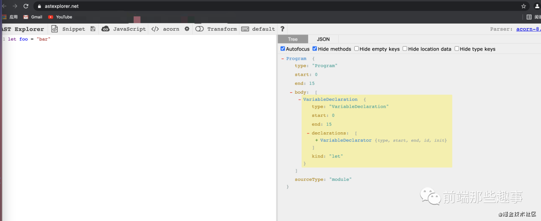 对于 AST 的模拟生成,感兴趣的同学可以使用 astexplorer 在线尝试