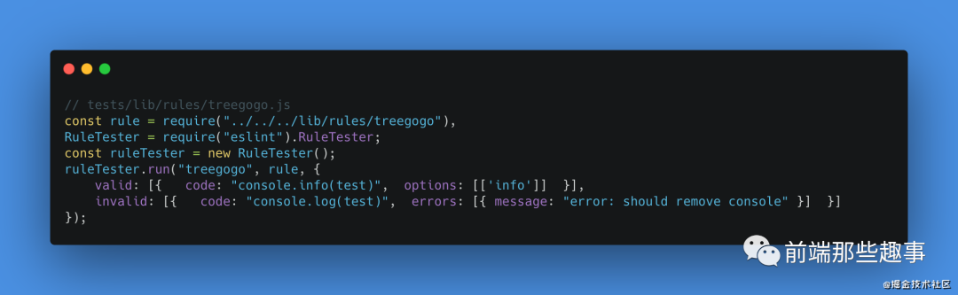 我们对tests/rules/treegogo.js单元测试文件进行修改,定义 invalid 与 valid 的不同例子