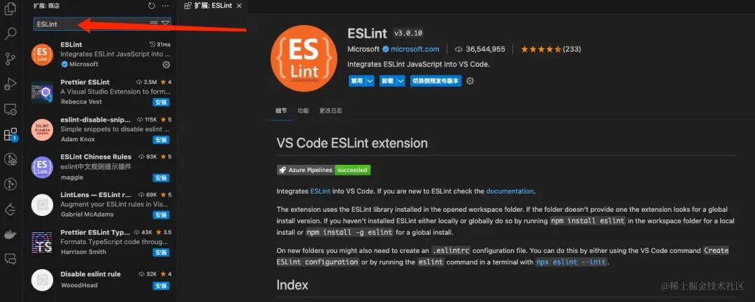 安装插件: 找到 ESLint 插件后,然后点击 “安装”。