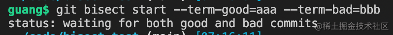 提示是等待指定 bad 和 good 的 commit。