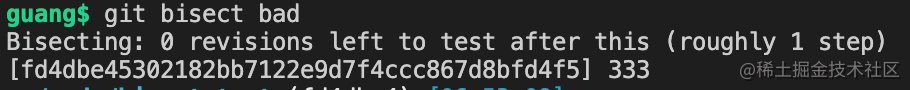 这样就找到了哪个 commit 出的错,是 333 这个 commit