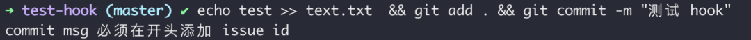 import java.util.regex.Pattern; class HookExample { public static void main(String[] args) { String commitMsg = args[0]; boolean checkIssueId = Pattern.matches("^#\\d+\\s+.*", commitMsg); if(!checkIssueId) { System.out.println("fail: commit msg 必须在开头添加 issue id"); } } }结语
