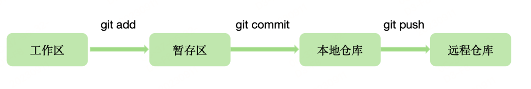 工作区(Working Directory):指的是本地项目,当我们在工作区中修改、删除或增加代码后,Git 并不会自动追踪这些变化。