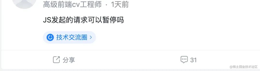 来看看提问者的使用场景 —— JS 发起的请求,那么可以认为问题当中的请求,应该是指在 JS 运行时中发起的 XMLHttpRequest 或者是 fetch 请求,而请求既然已经发起,那问的自然就是 响应是否能够被暂停 。