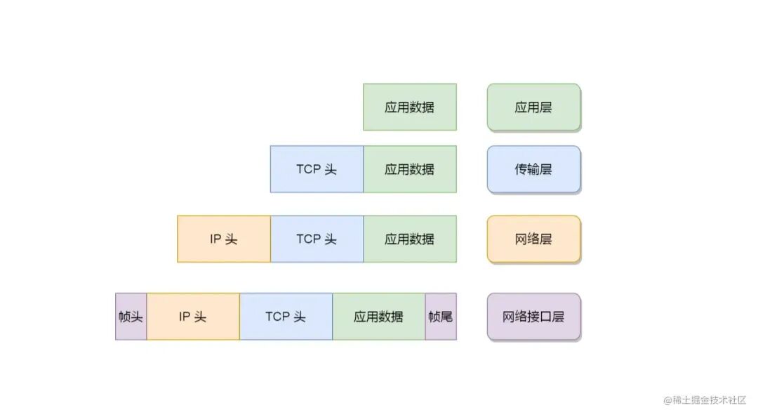 这里得先介绍一下 TCP/IP 网络模型, 网络模型自上而下分为 应用层、传输层、网络层和网络接口层。