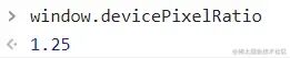 显示设备宽度物理像素值 = window.screen.width * window.devicePixelRatio;设备像素比在我的笔记本电脑上显示的数值是 1.25, 代表一个 css 逻辑像素对应着 1.25 个物理像素。