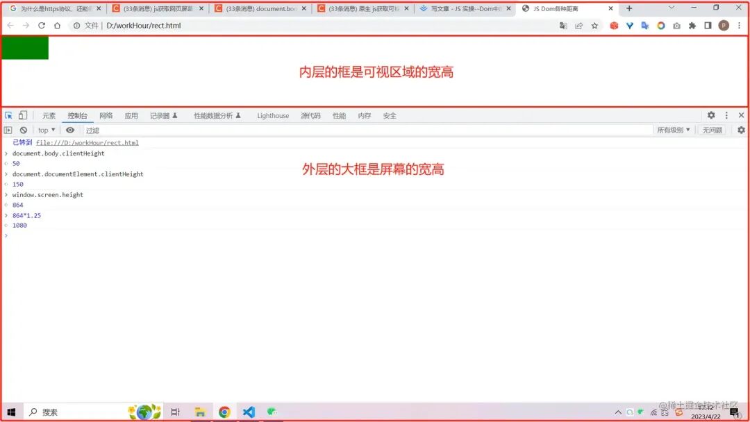 下面我们进入正题, 笔者不善于画图, 主要是借助浏览器开发者工具,通过获取的数值给大家说明一下各种距离的区别。