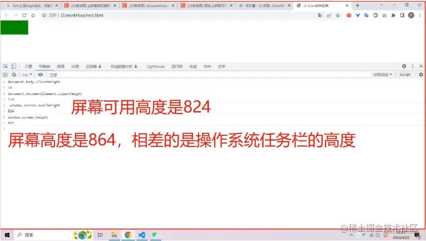 - 屏幕高度和屏幕可用高度区别如下: