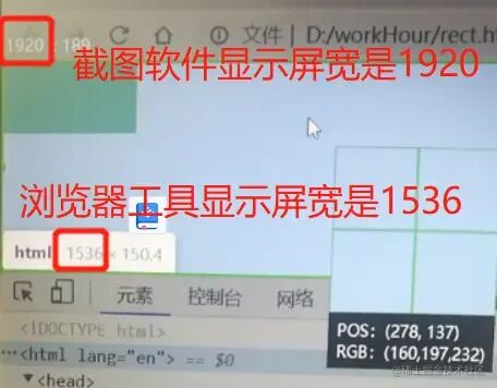 本打算用截图软件丈量尺寸,结果发现截图软件显示的屏幕宽度与浏览器开发者工具获取的宽度不一致,这是为什么呢?