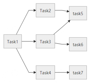 其次,就是并行任务。如图,Task1 执行完之后,需要执行后续三个任务,这三个任务是并行执行的: