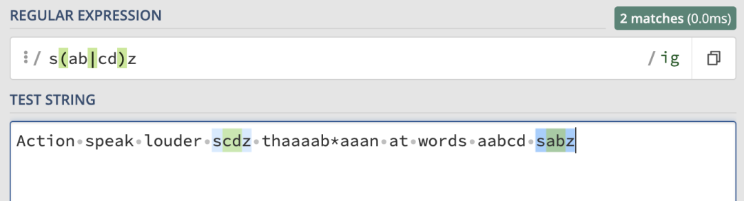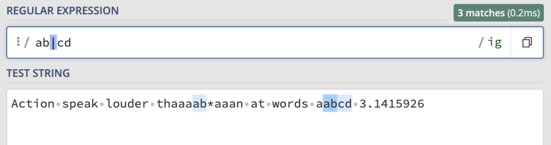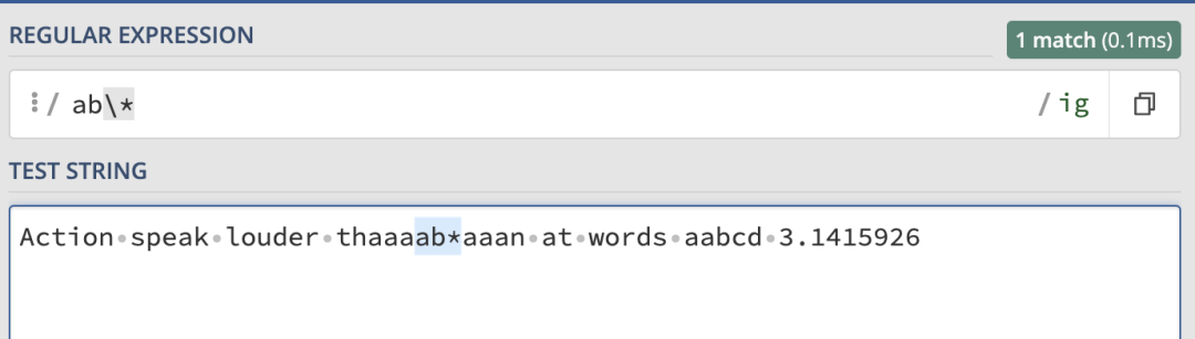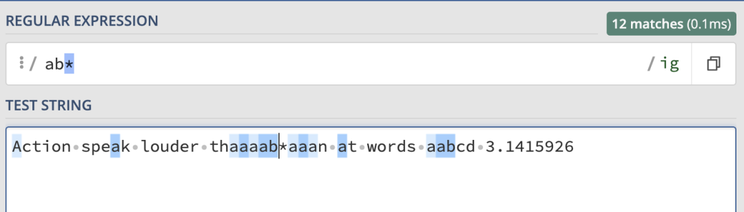 来看一个简单的例子,如果我们使用 /ab*/ig 进行匹配,结果就如下: