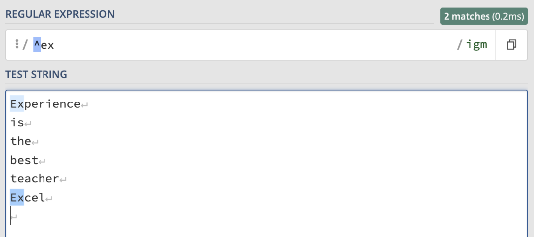 同样,可以将其切换为正向前瞻,以强制字符串必须以 “Test” 开头: