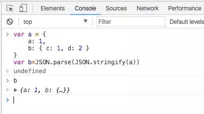 var b=JSON.parse(JSON.stringify(a))不考虑 IE 的情况下,标准 JSON 格式的对象蛮实用,不过对于 undefined 和 function 的会忽略掉。
