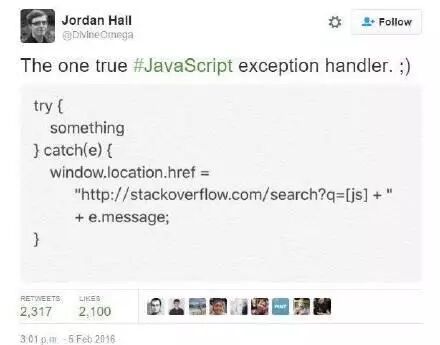 console.log(([][[]]+[])[+!![]]+([]+{})[!+[]+!![]])4、JavaScript 错误处理的方式的正确姿势