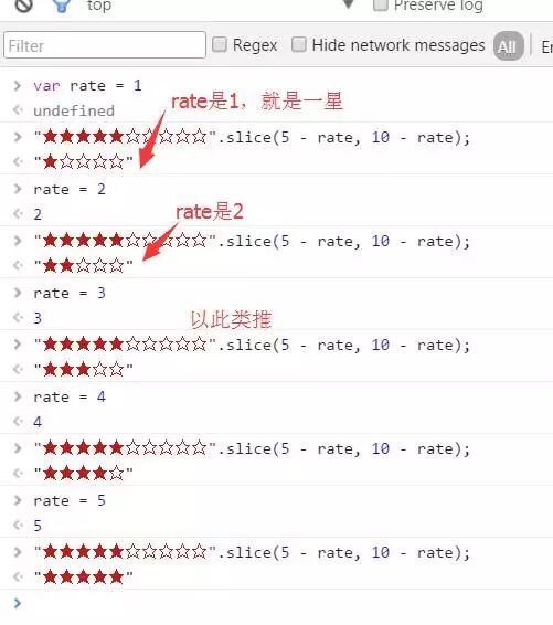定义一个变量 rate 是 1 到 5 的值,然后执行上面代码,看图