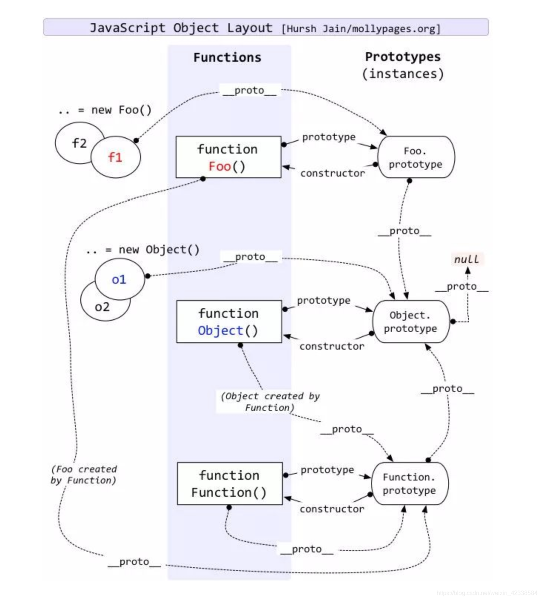 这张图详细的描述了构造函数 Function,Object 以及它们实例之间的原型关系。